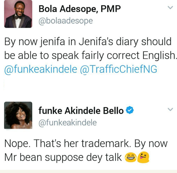 Renowned actress, Funke Akindele , has replied a Twitter user who feels her character, Jenifa in her hit comic series, ‘Jenifas Diary’ should be speaking fairly good English.