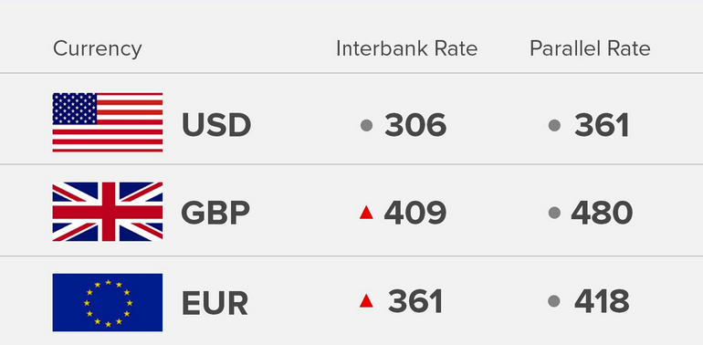 Today’s 10/7/2018) exchange rate of the Nigerian Naira against the Dollar, Pound and Euro.