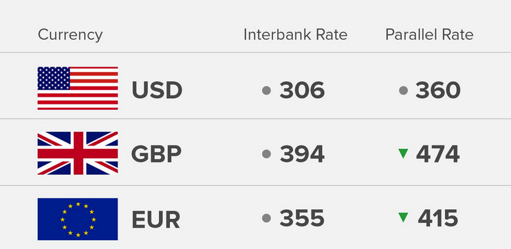 Today’s 10/8/2018) exchange rate of the Nigerian Naira against the Dollar, Pound and Euro.