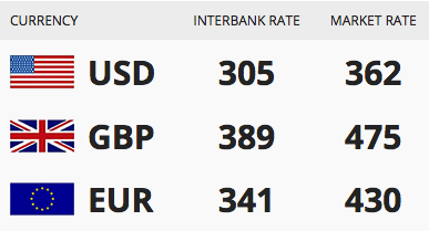 Today’s 10/08/2017) exchange rate of the Nigerian Naira against the Dollar, Pound and Euro.