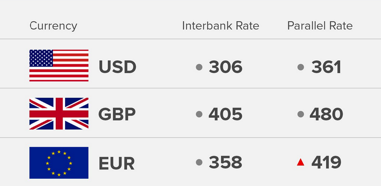 Today’s 12/7/2018) exchange rate of the Nigerian Naira against the Dollar, Pound and Euro.