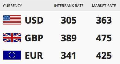 Today’s 12/10/2017) exchange rate of the Nigerian Naira against the Dollar, Pound and Euro.