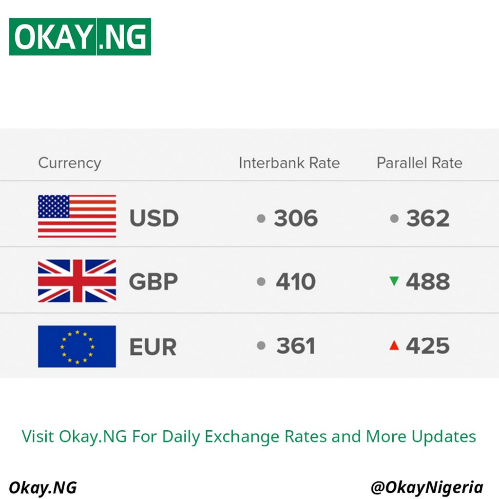 Today’s 14/6/2018) exchange rate of the Nigerian Naira against the Dollar, Pound and Euro.