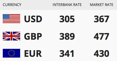 Today’s 14/08/2017) exchange rate of the Nigerian Naira against the Dollar, Pound and Euro.