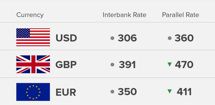 Today’s 15/8/2018) exchange rate of the Nigerian Naira against the Dollar, Pound and Euro.