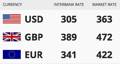 Today’s 16/11/2017) exchange rate of the Nigerian Naira against the Dollar, Pound and Euro.