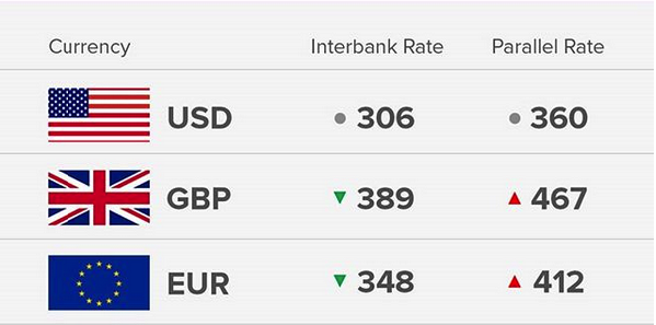 Today’s 17/8/2018) exchange rate of the Nigerian Naira against the Dollar, Pound and Euro.