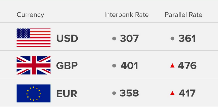 Today’s 18/9/2018) exchange rate of the Nigerian Naira against the Dollar, Pound and Euro.