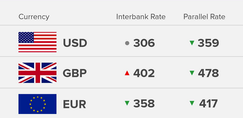 Today’s 2/8/2018) exchange rate of the Nigerian Naira against the Dollar, Pound and Euro.