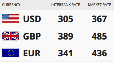 Today’s 20/09/2017) exchange rate of the Nigerian Naira against the Dollar, Pound and Euro.