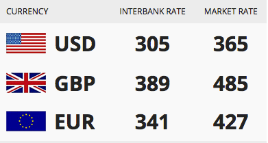 Today’s 22/12/2017) exchange rate of the Nigerian Naira against the Dollar, Pound and Euro.