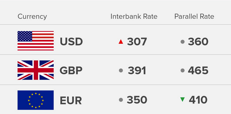 Today’s 22/8/2018) exchange rate of the Nigerian Naira against the Dollar, Pound and Euro.