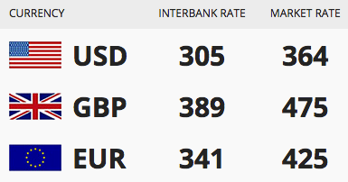 Today’s 24/11/2017) exchange rate of the Nigerian Naira against the Dollar, Pound and Euro.