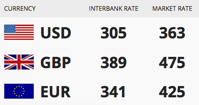 Today’s 25/10/2017) exchange rate of the Nigerian Naira against the Dollar, Pound and Euro.