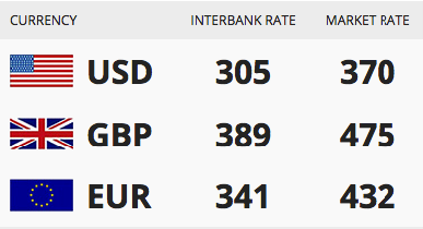 Today’s 25/08/2017) exchange rate of the Nigerian Naira against the Dollar, Pound and Euro.