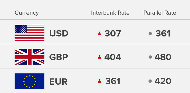 Today’s 26/9/2018) exchange rate of the Nigerian Naira against the Dollar, Pound and Euro.