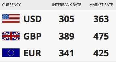 Today’s 27/10/2017) exchange rate of the Nigerian Naira against the Dollar, Pound and Euro.