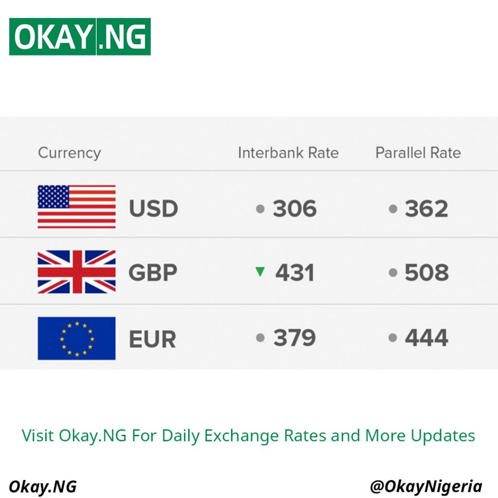 Today’s 28/3/2018) exchange rate of the Nigerian Naira against the Dollar, Pound and Euro.