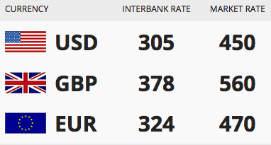 Today’s (28/2/17) exchange rate of the Nigerian Naira against the Dollar, Euro and Pounds.