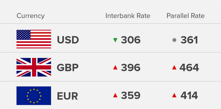 Today’s 29/8/2018) exchange rate of the Nigerian Naira against the Dollar, Pound and Euro.