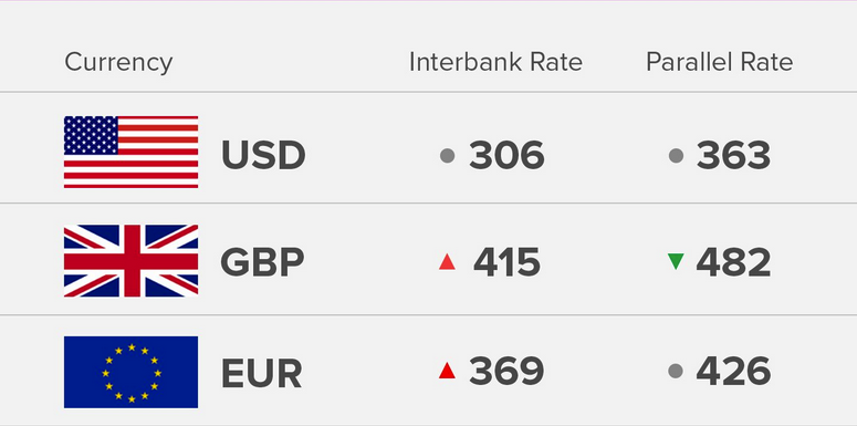 Today’s 3/1/2018) exchange rate of the Nigerian Naira against the Dollar, Pound and Euro.