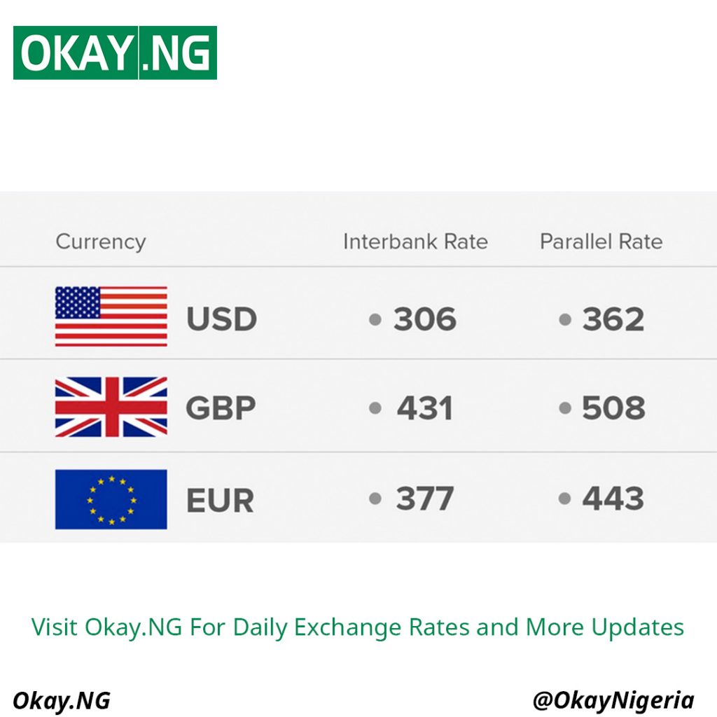 Today’s 3/4/2018) exchange rate of the Nigerian Naira against the Dollar, Pound and Euro.