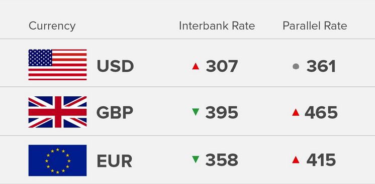 Today’s 30/8/2018) exchange rate of the Nigerian Naira against the Dollar, Pound and Euro