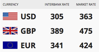 Today’s 31/10/2017) exchange rate of the Nigerian Naira against the Dollar, Pound and Euro.