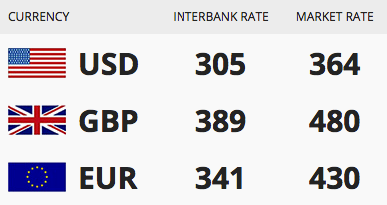 Today’s 4/12/2017) exchange rate of the Nigerian Naira against the Dollar, Pound and Euro.