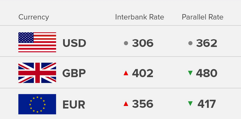 Today’s 4/7/2018) exchange rate of the Nigerian Naira against the Dollar, Pound and Euro.