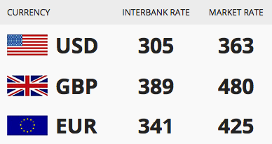 Today’s 7/12/2017) exchange rate of the Nigerian Naira against the Dollar, Pound and Euro.