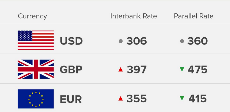 Today’s 8/8/2018) exchange rate of the Nigerian Naira against the Dollar, Pound and Euro.