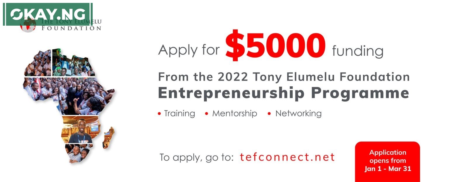• Tony Elumelu Foundation Programme: $5,000 non-refundable seed capital.