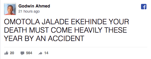 “Omotola Jalade Ekehinde Your Death Must Come Heavily These Year by An Accident.”