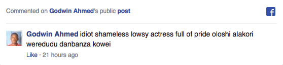 One social media user identified as Godwin Ahmed has placed a heavy curse on Nollywood actress Omotola Jalade Ekeinde for refusing to marry him.