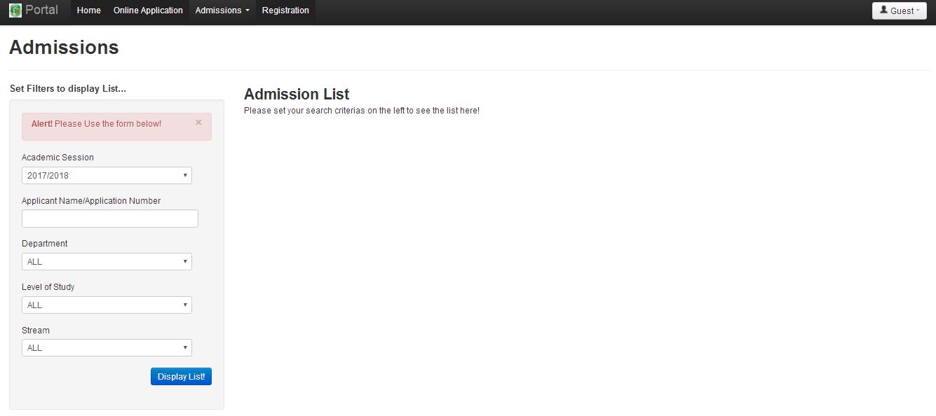 -Click on “Display List” to view the names of admitted candidates as applicable.