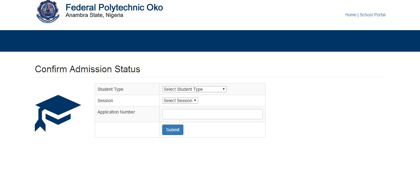 Candidates should visit the Polytechnic website: www.federalpolyoko.edu.ng to check their admission status adopting the following steps: