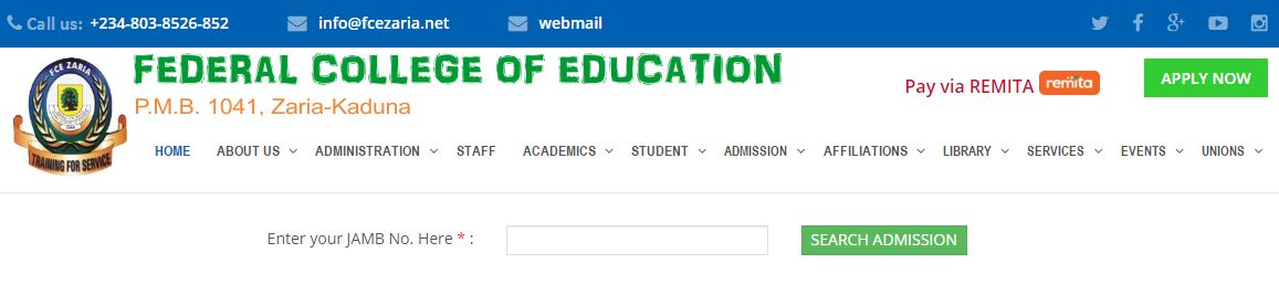 This is to inform members of the general public that the management of Federal College of Education (FCE) Zaria has released the NCE Admission List for the 2017/2018 academic session.