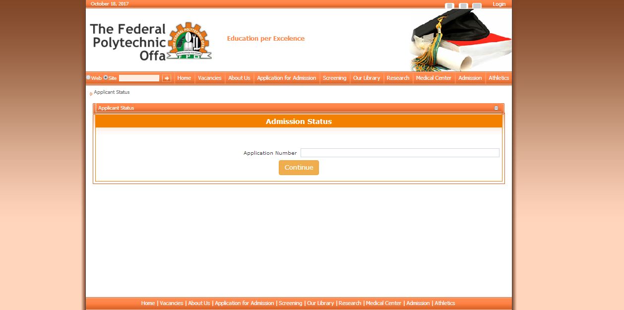 (i) Pay acceptance fee of Ten Thousand Naira (N10,000) only with the use of ATM card that is Inter switch compatible, print acceptance fee receipt online and change to official receipt in the Bursary.