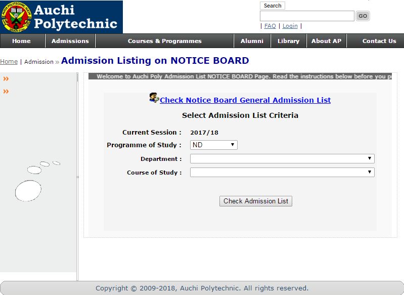How to Check Auchi Polytechnic 2017/2018 SPAT Admission List Online.