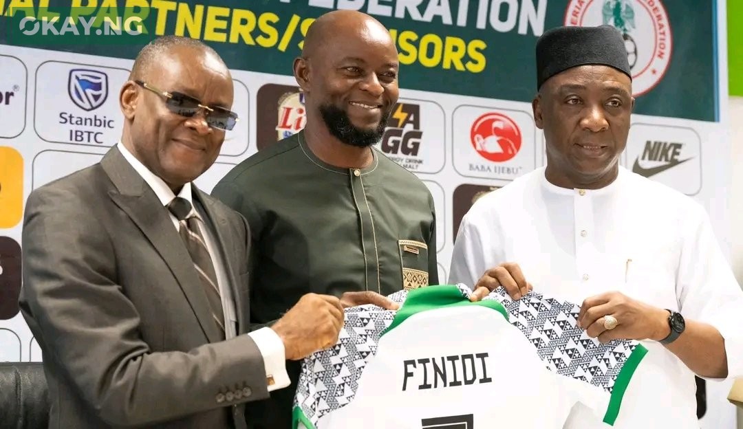 The Minister of Sports Development, John Enoh, has officially unveiled Finidi George as the new head coach of the Nigerian men’s national team, the Super Eagles. The unveiling ceremony took place at the Media Centre of the Moshood Abiola National Stadium in Abuja on Monday morning, attended by leaders of the Nigerian Football Federation (NFF).