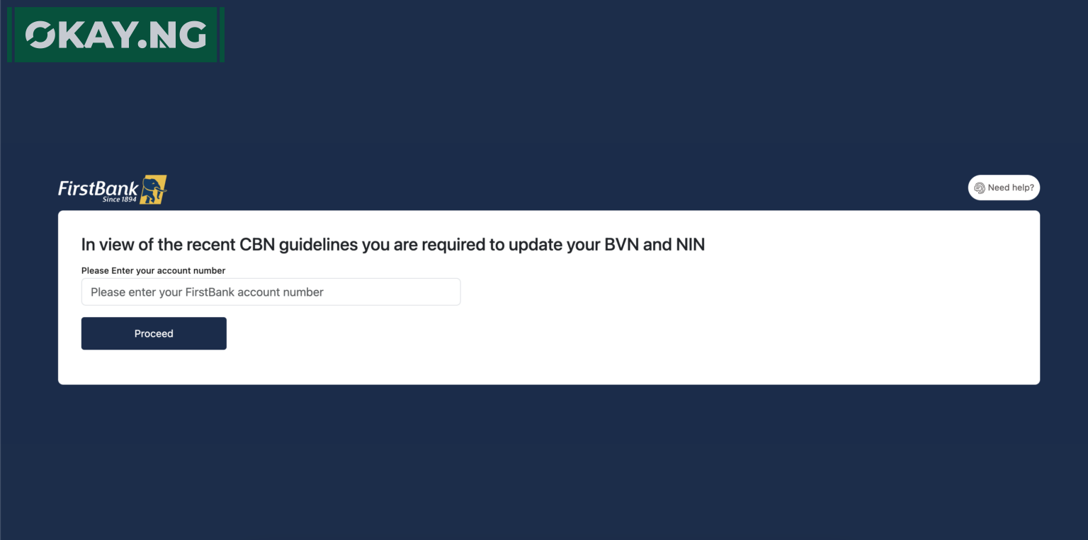 • Provide Account Details: Enter your FirstBank account number and submit your BVN and NIN details online.