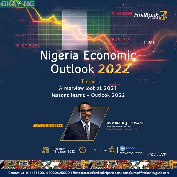 First Bank of Nigeria Limited, Nigeria’s premier and leading financial inclusion services provider has announced its “Nigerian Economic Outlook Webinar” convened to reflect national and global economic trends that shaped 2021, whilst forecasting the economic outlook of 2022.