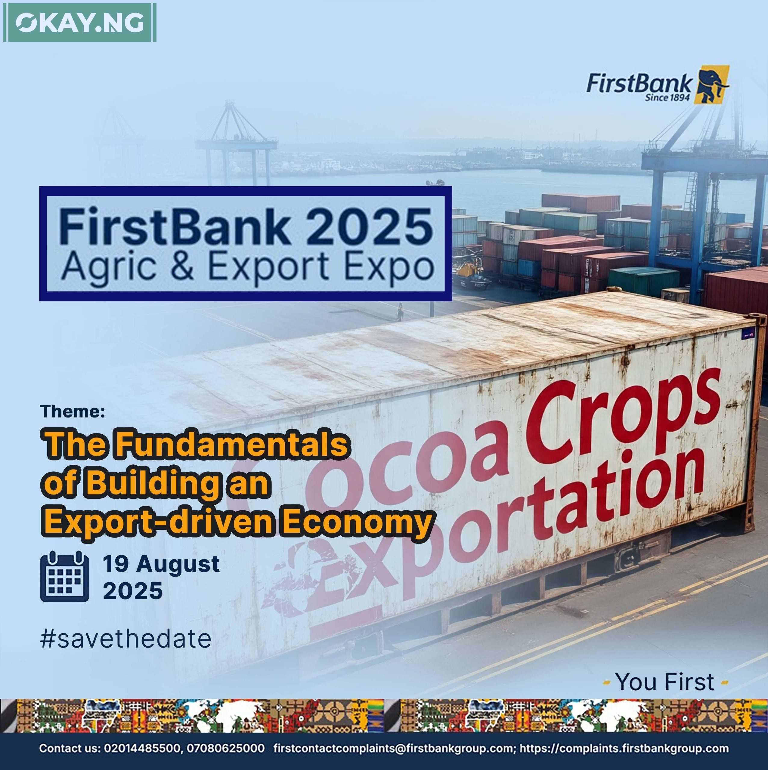 FirstBank, West Africa’s premier financial institution and leading financial inclusion service provider, has announced the 2025 edition of its Agric and Export Conference, themed “The Fundamentals of Building a Non-Oil Export Driven Economy”.
