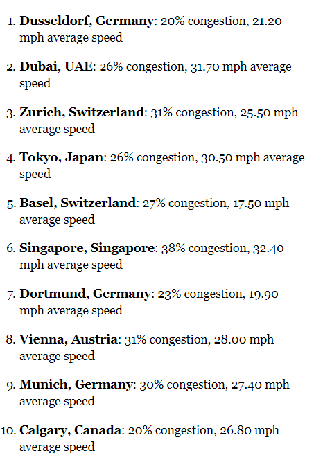According to Forbe’s list, Dusseldorf in Germany came first as the best city for drivers, with 20 per cent congestion, and 21.20mph average speed.