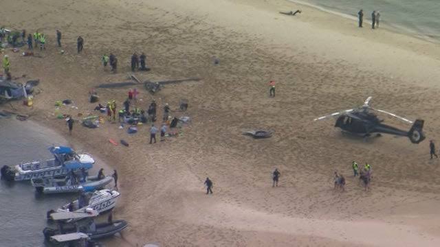 Several police and rescue vessels stood by just off the sandbank strewn with the wreckage of the two aircraft.