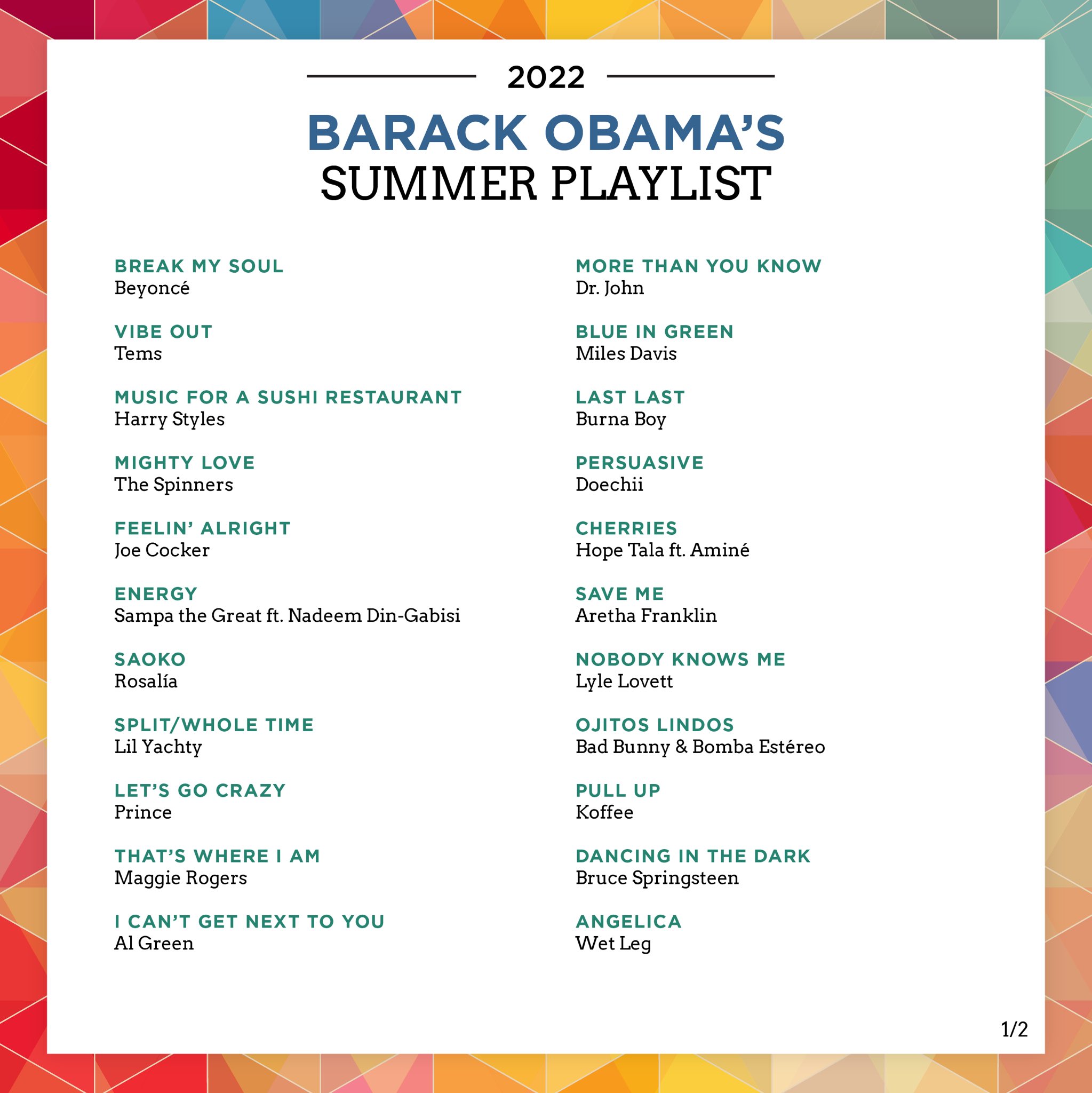 Former US president Barrack Obama has shared his summer playlist for 2022 on Tuesday.