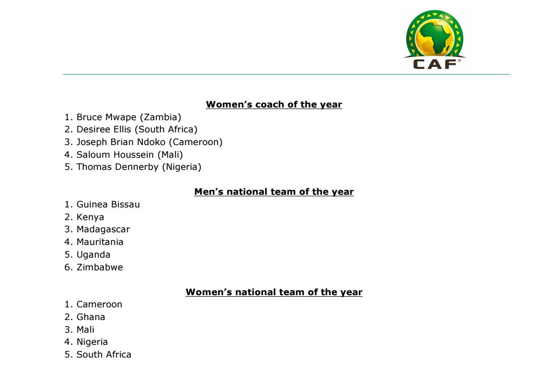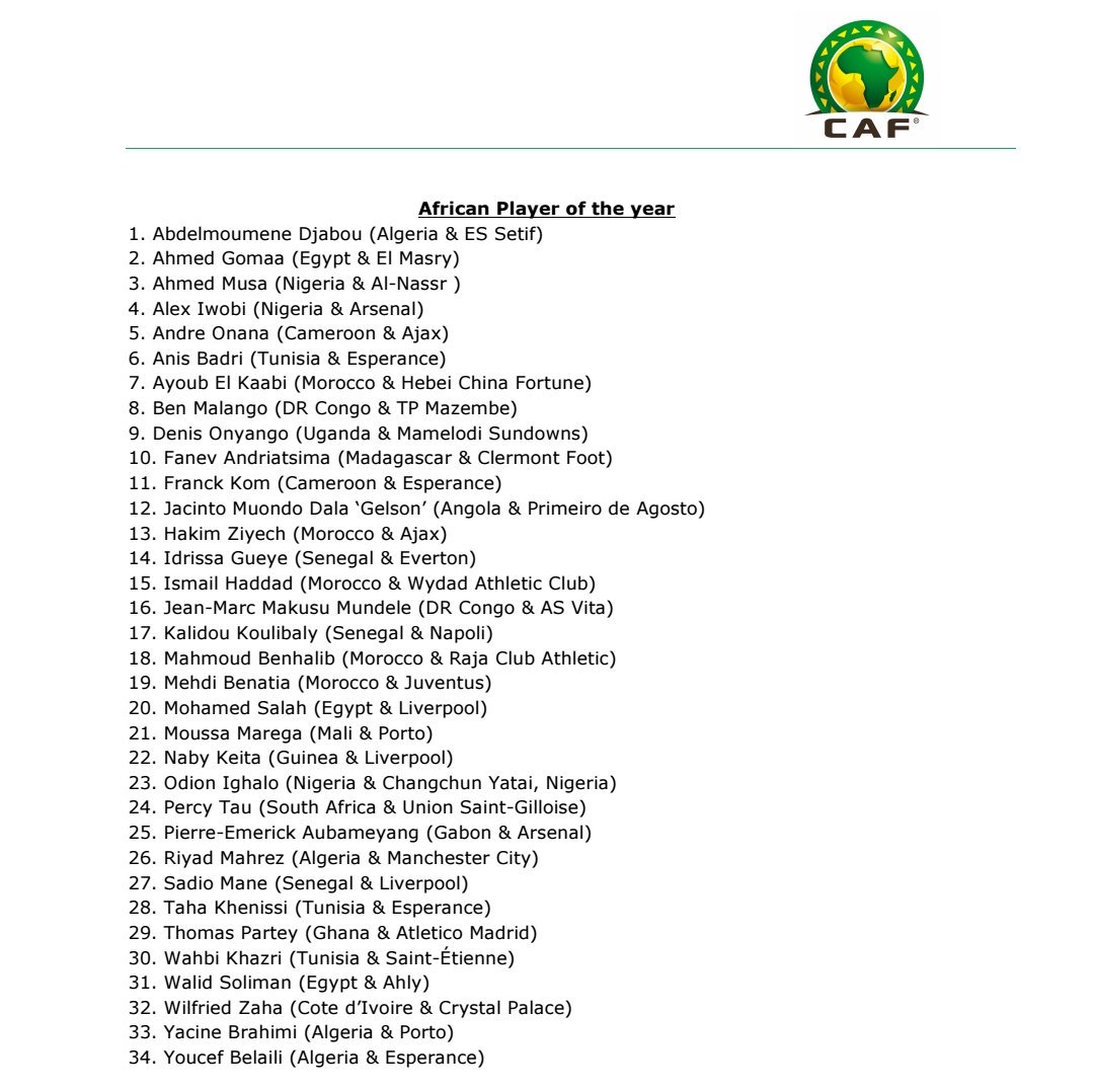 Below is the full list of the 2018 Caf Awards nominees and their various categories:
