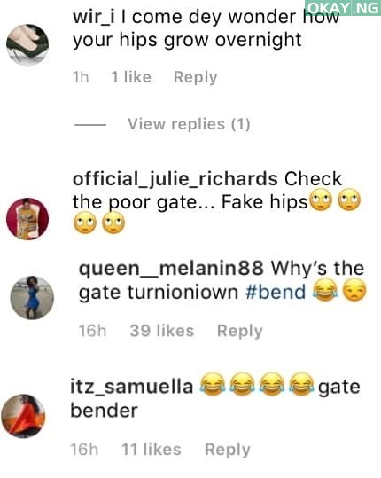 Meanwhile, Moyo’s fan spotted the edit on her hip which affected the gate on the photo background.