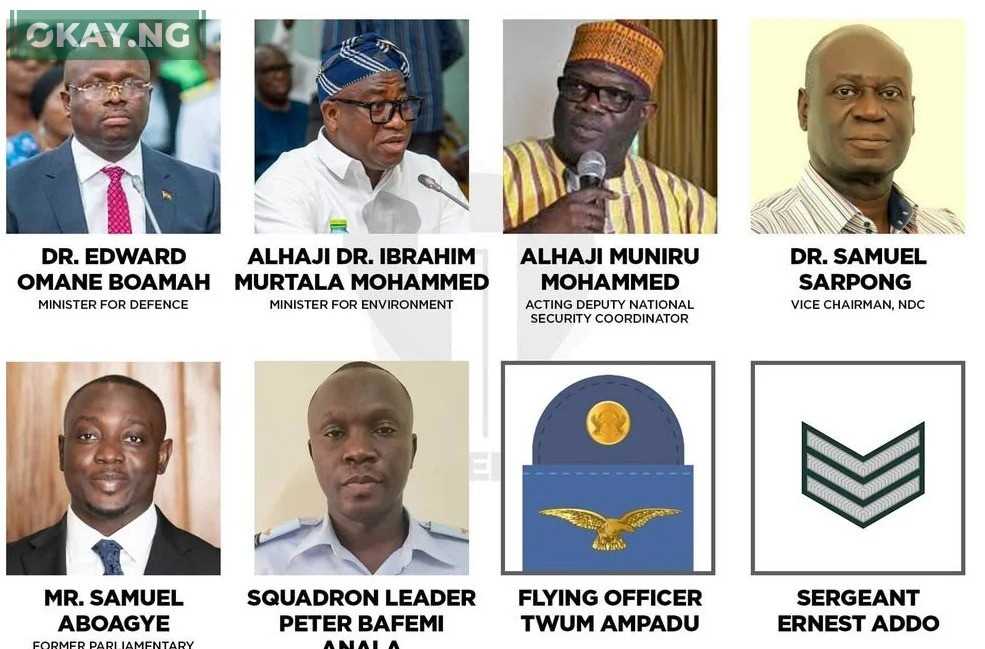 Among the deceased are prominent political and military figures whose loss has sent shockwaves throughout the country. The full list, released by the Ghana Armed Forces, includes: